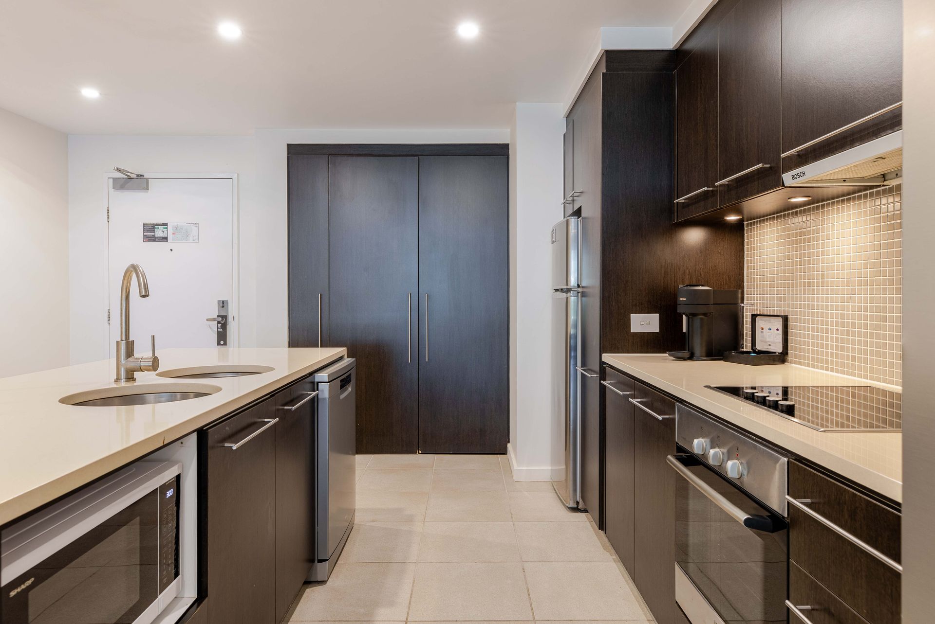 Fully self-contained, the apartment ensures complete independence with its large, modern, fully optioned kitchen equipped with everything you need for casual holiday grazing through to full meals for family and friends.