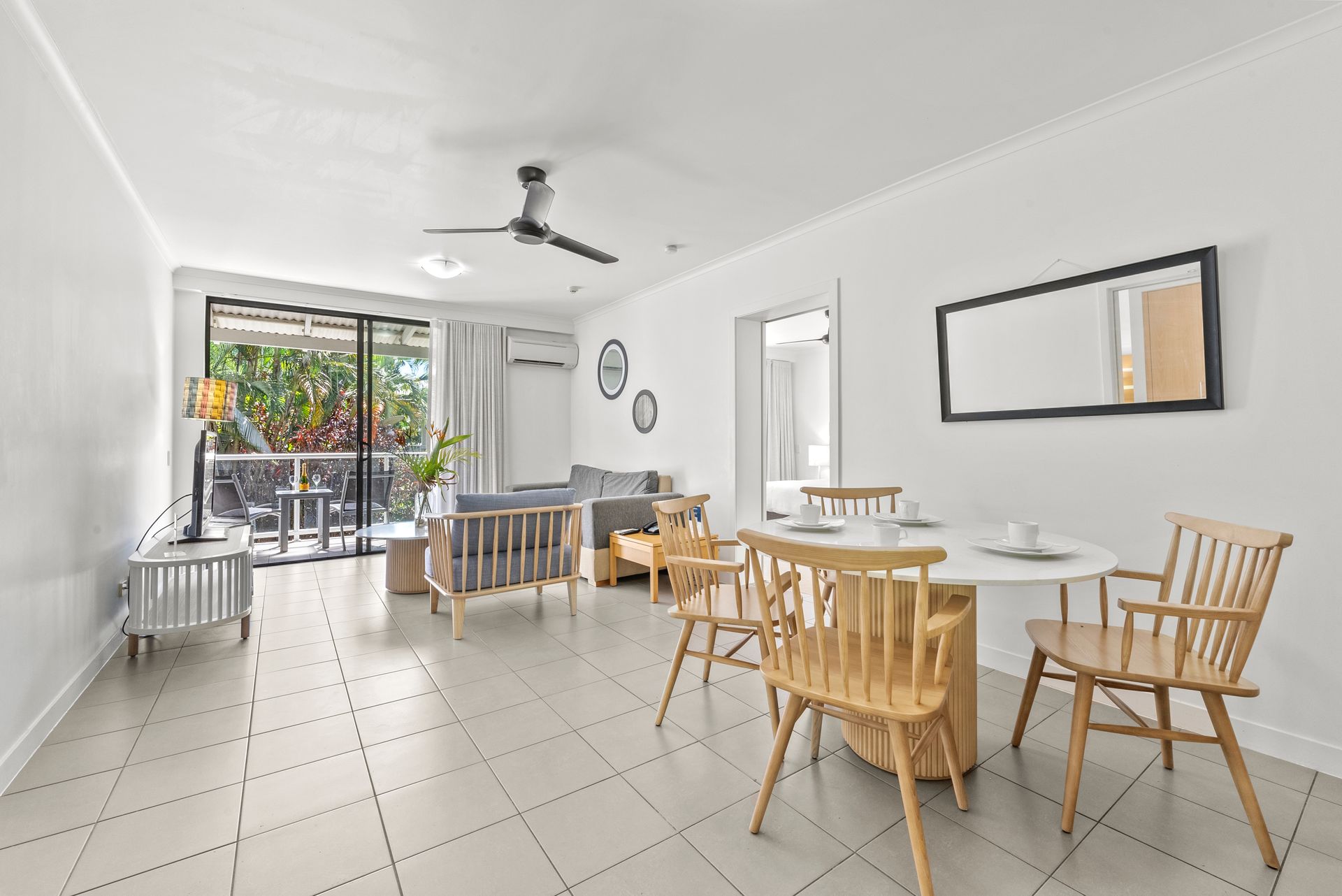 - tiled open plan lounge and dining area