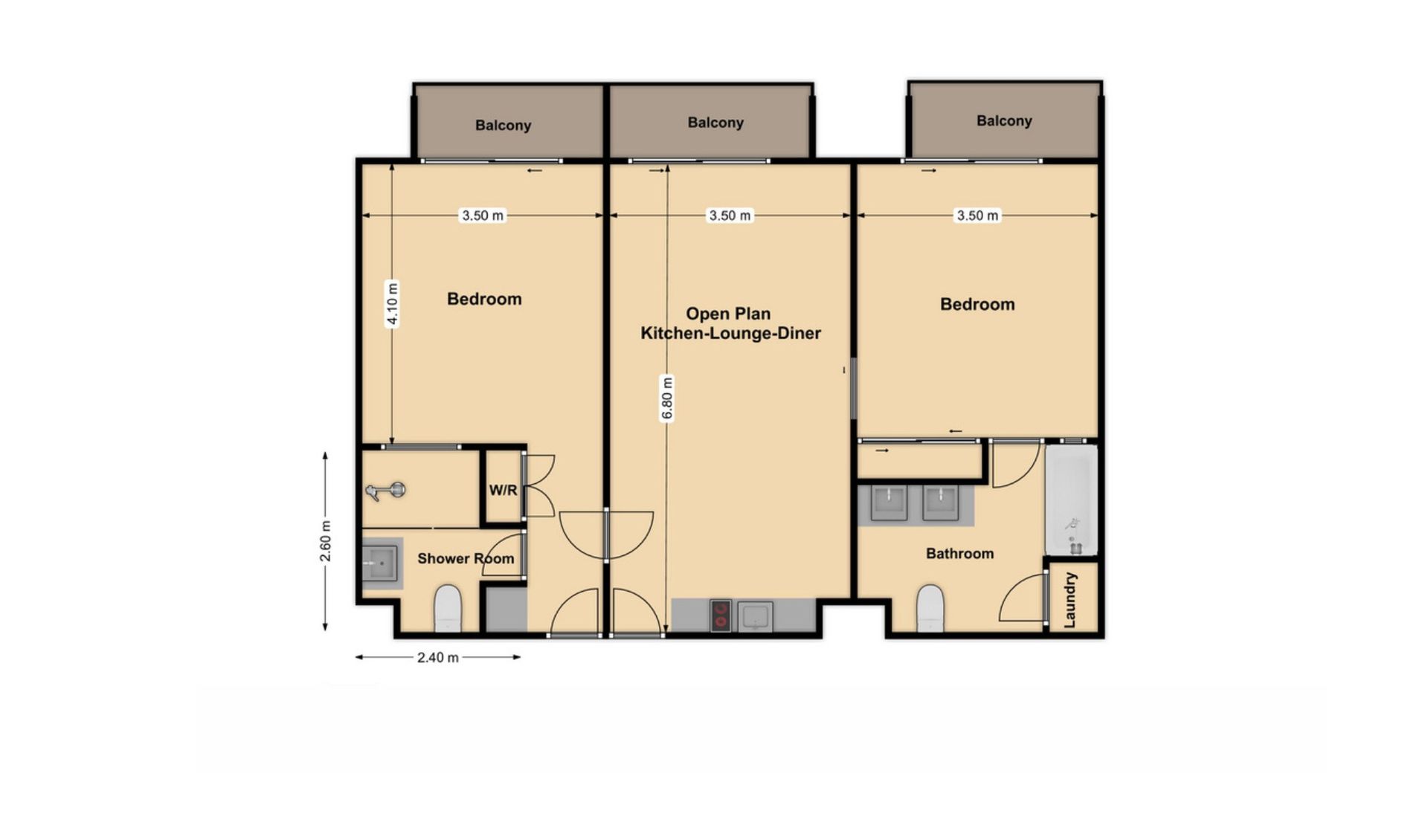 - twin balconies – one off the lounge and one off the bedroom