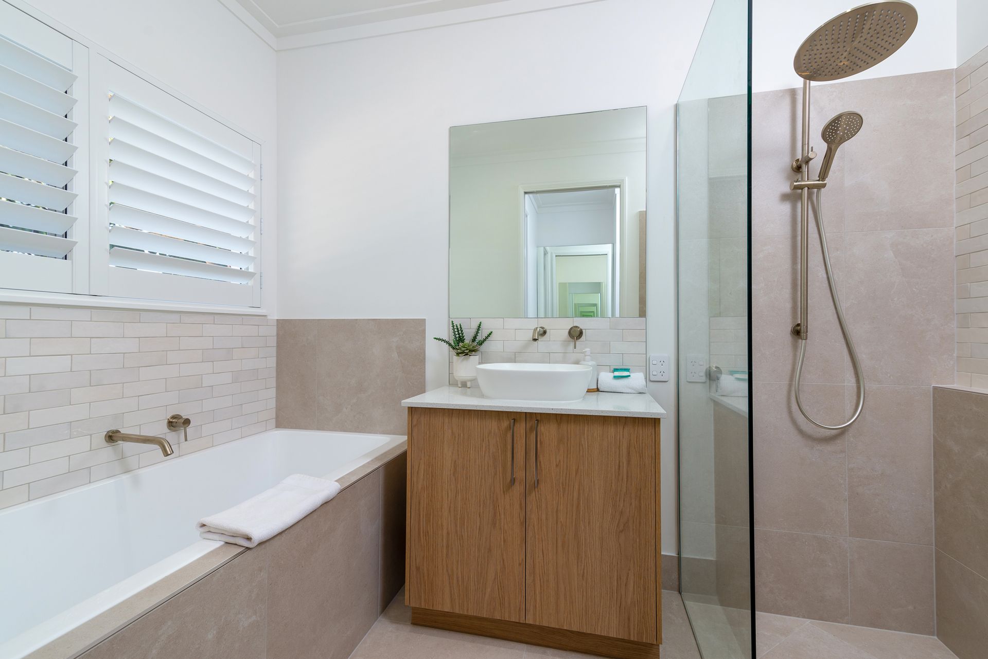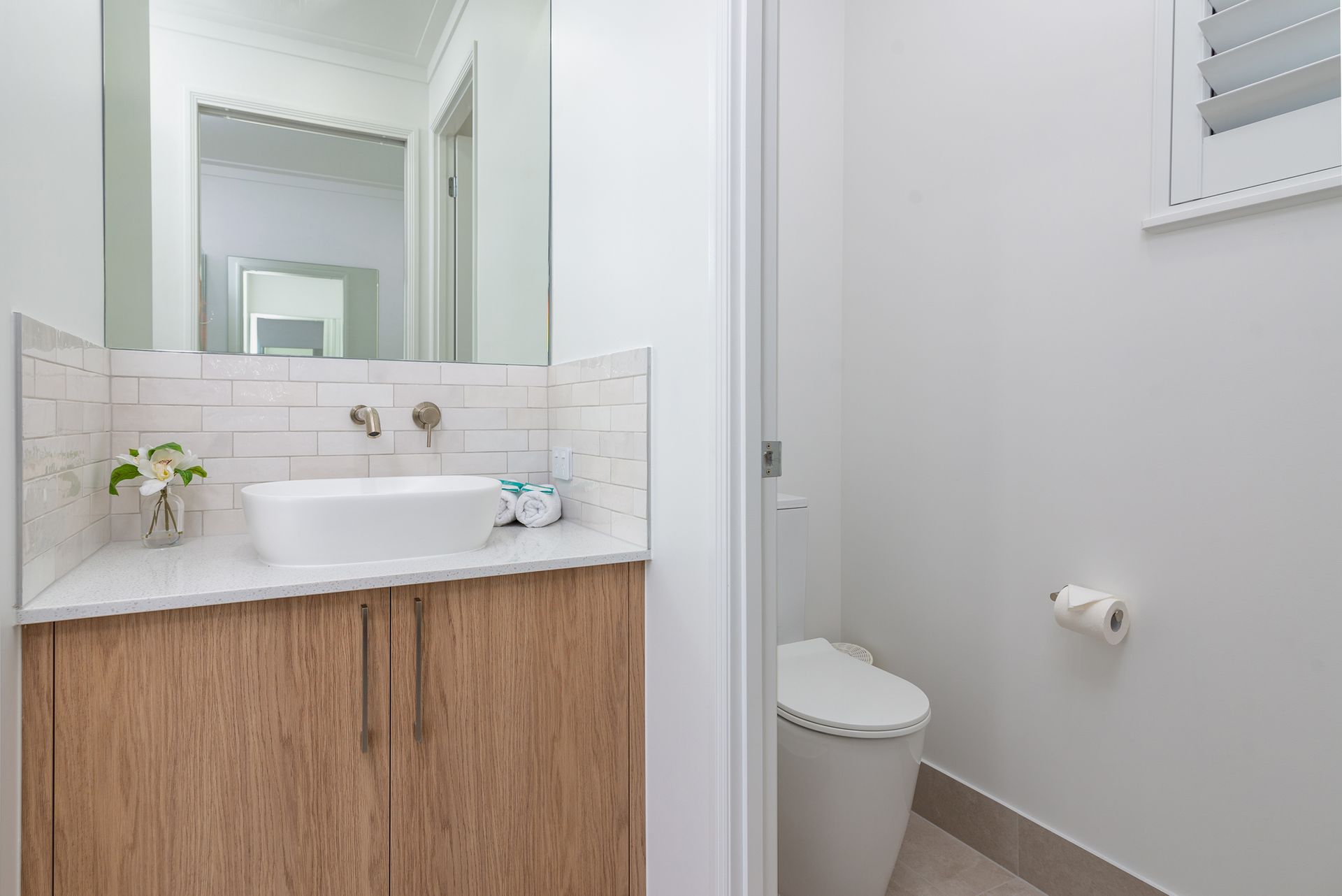 The main bathroom features separate shower, toilet and vanity spaces for maximum convenience.