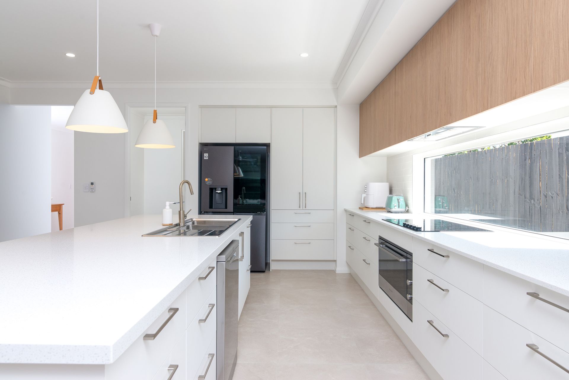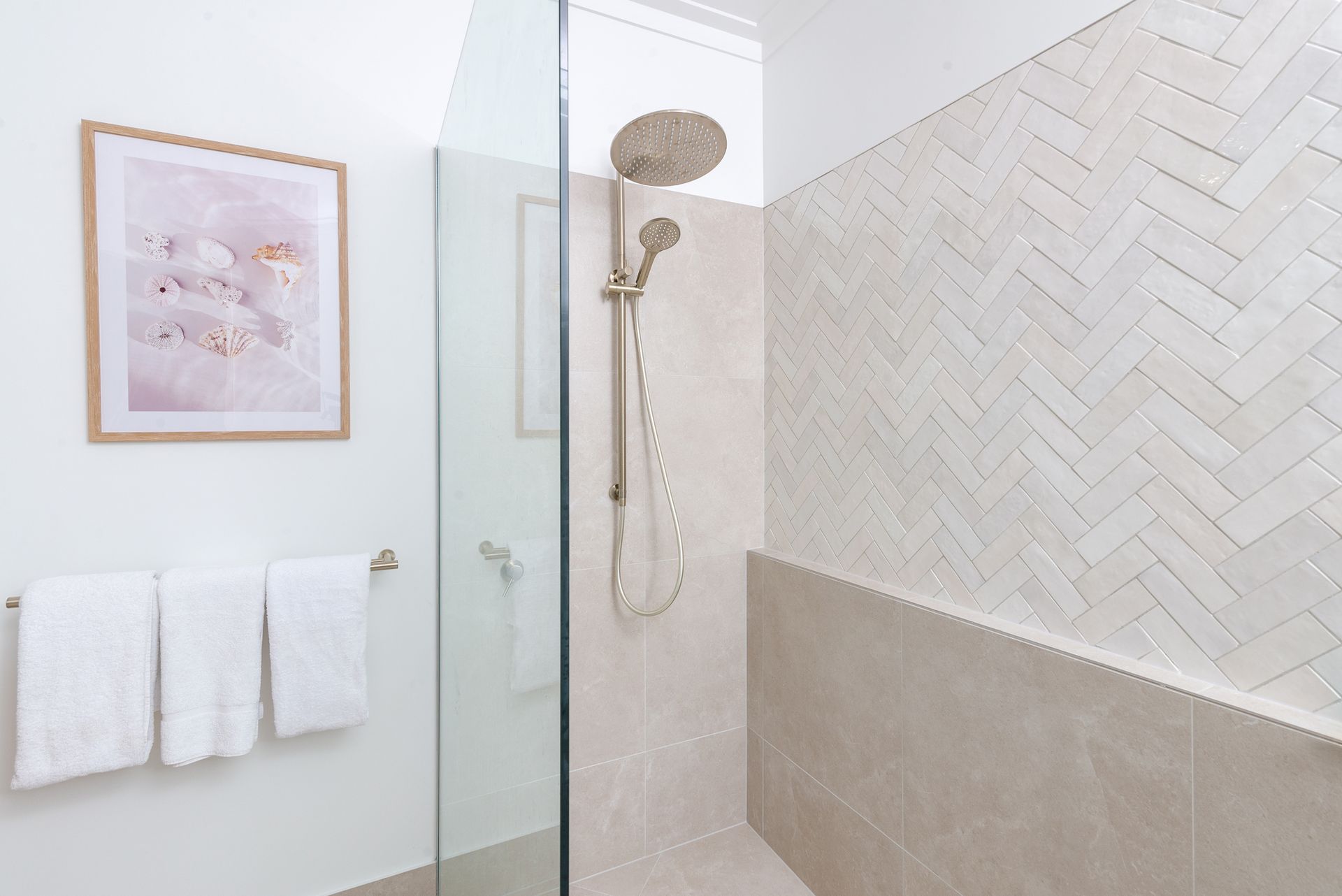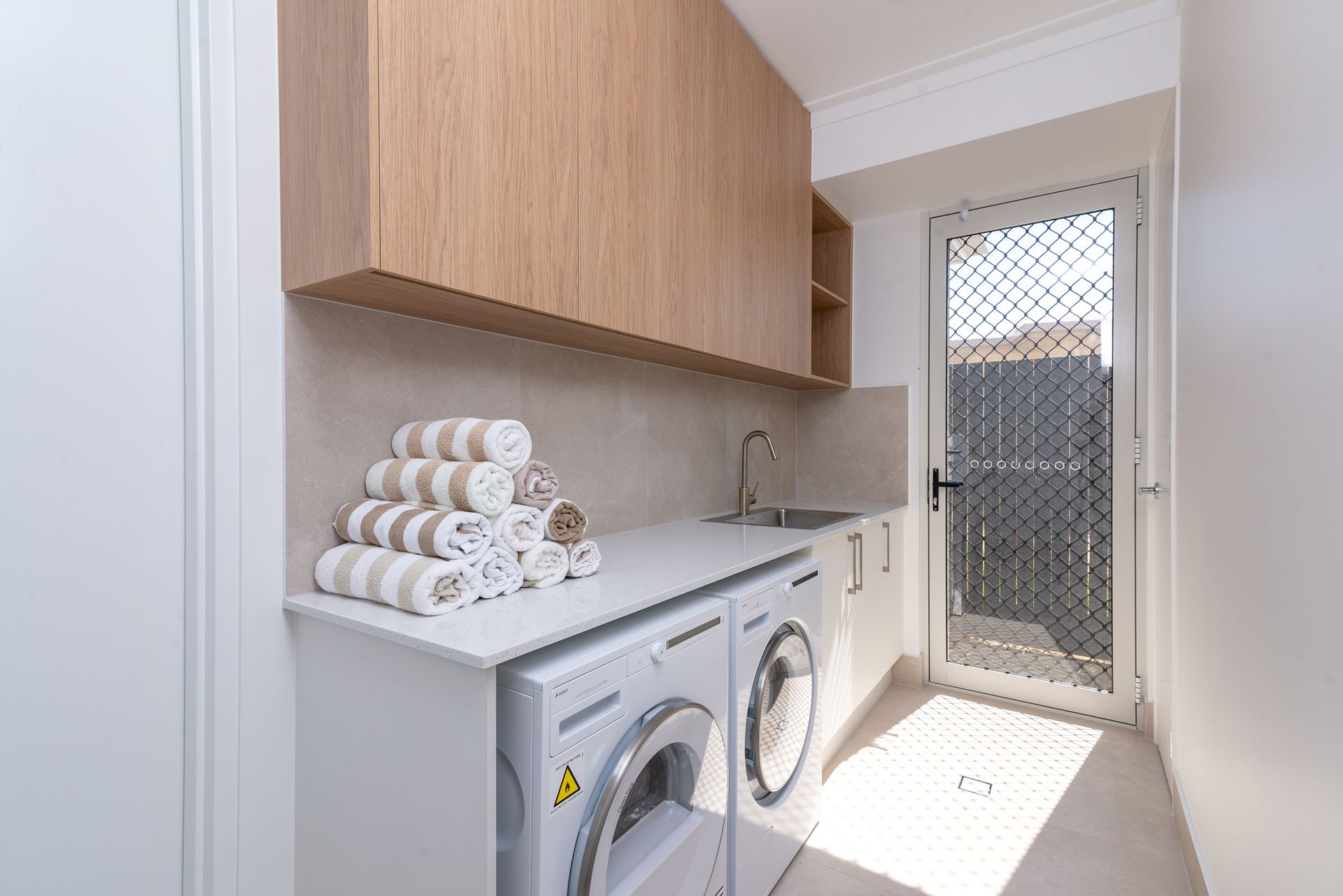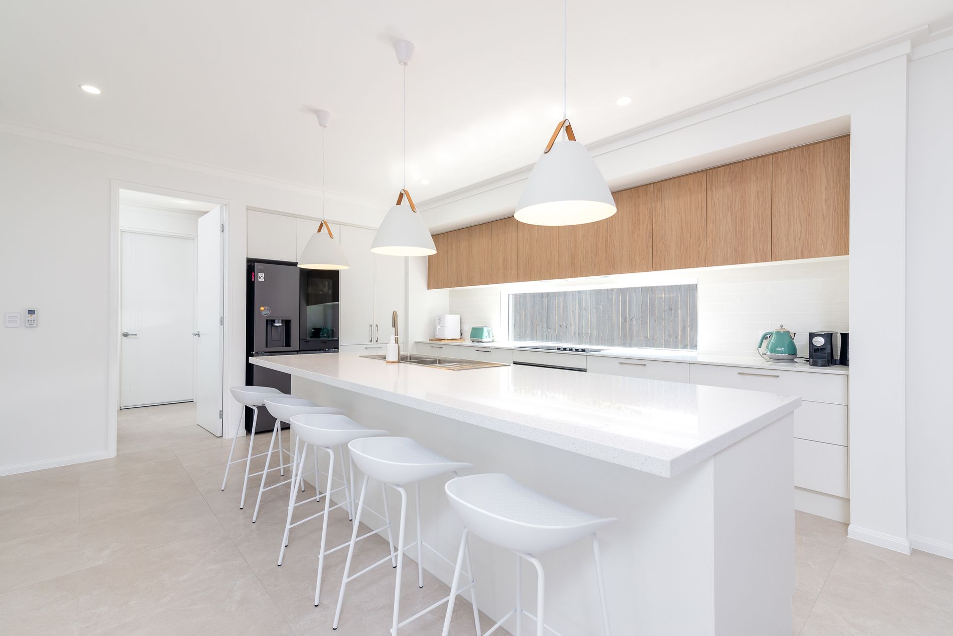 Perfect for families or friend groups, this modern home combines air conditioning, ceiling fans, cool contemporary tiling, crisp white decor and a flowing open plan living, dining and entertaining space for maximum comfort and convenience.