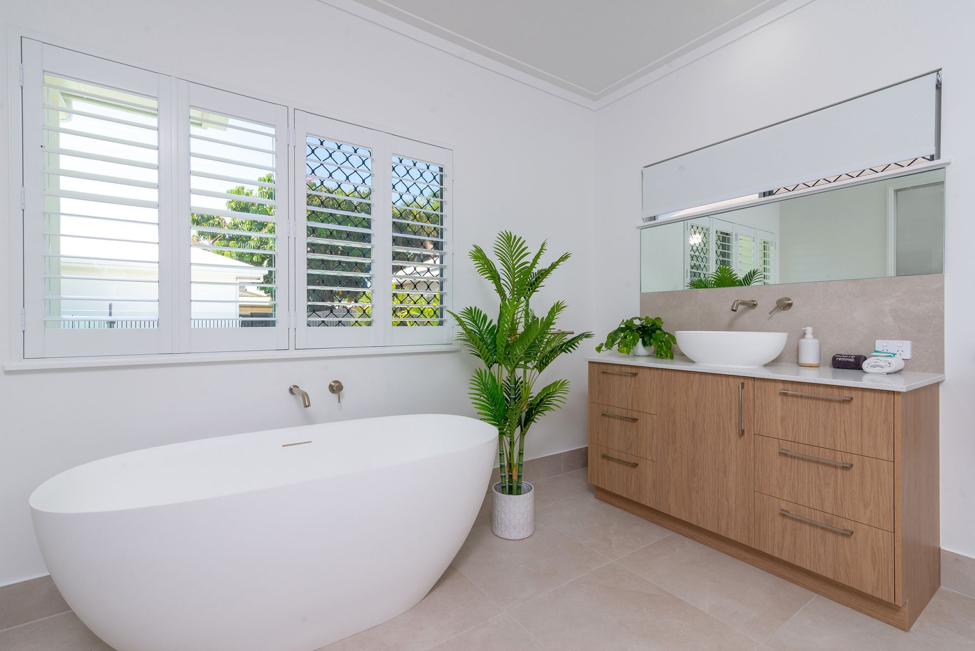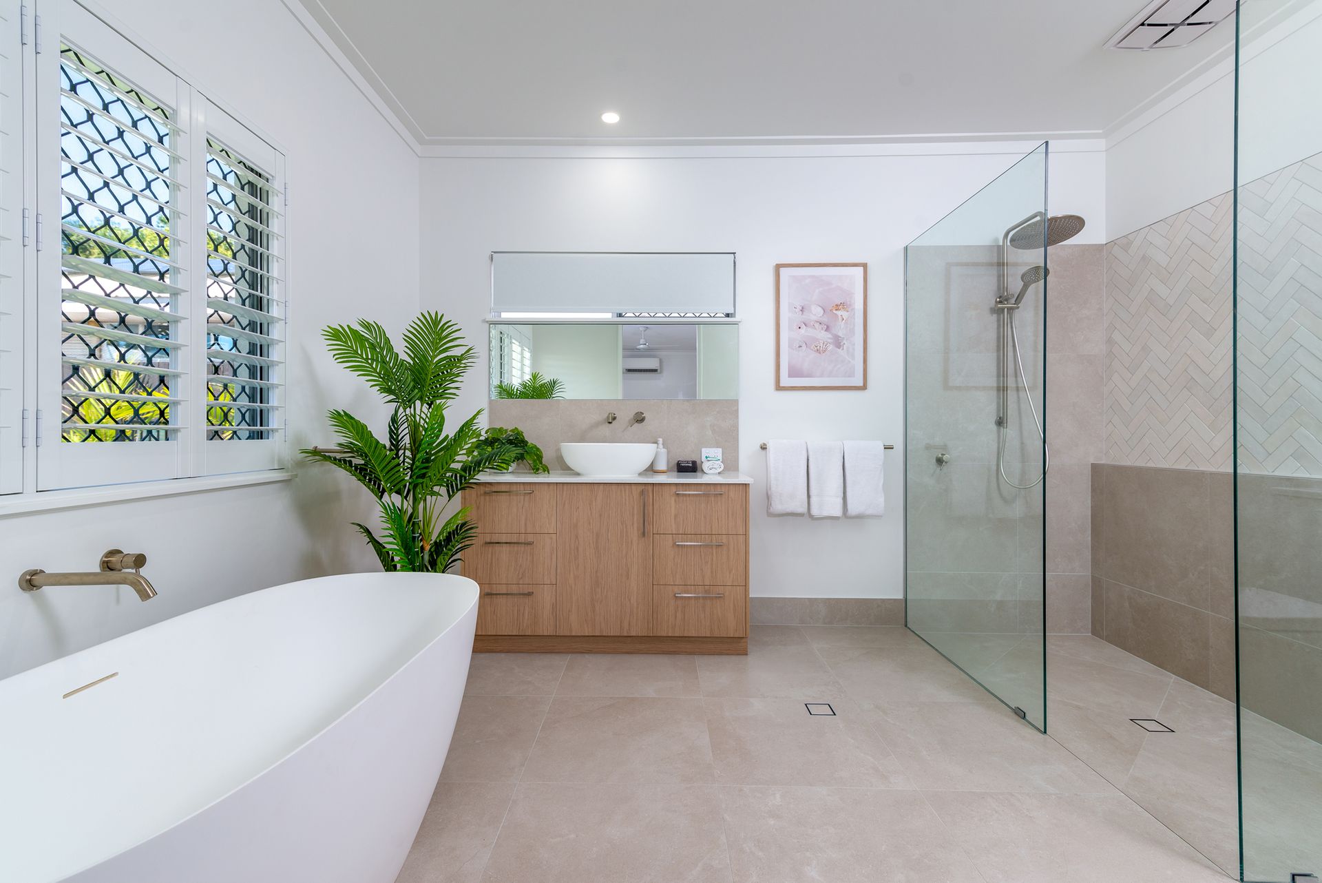 Revel in the sprawling master suite that includes a walk-through wardrobe and lavish ensuite complete with deep freestanding bath, walk-in shower, feature tiling and plantation shutters.