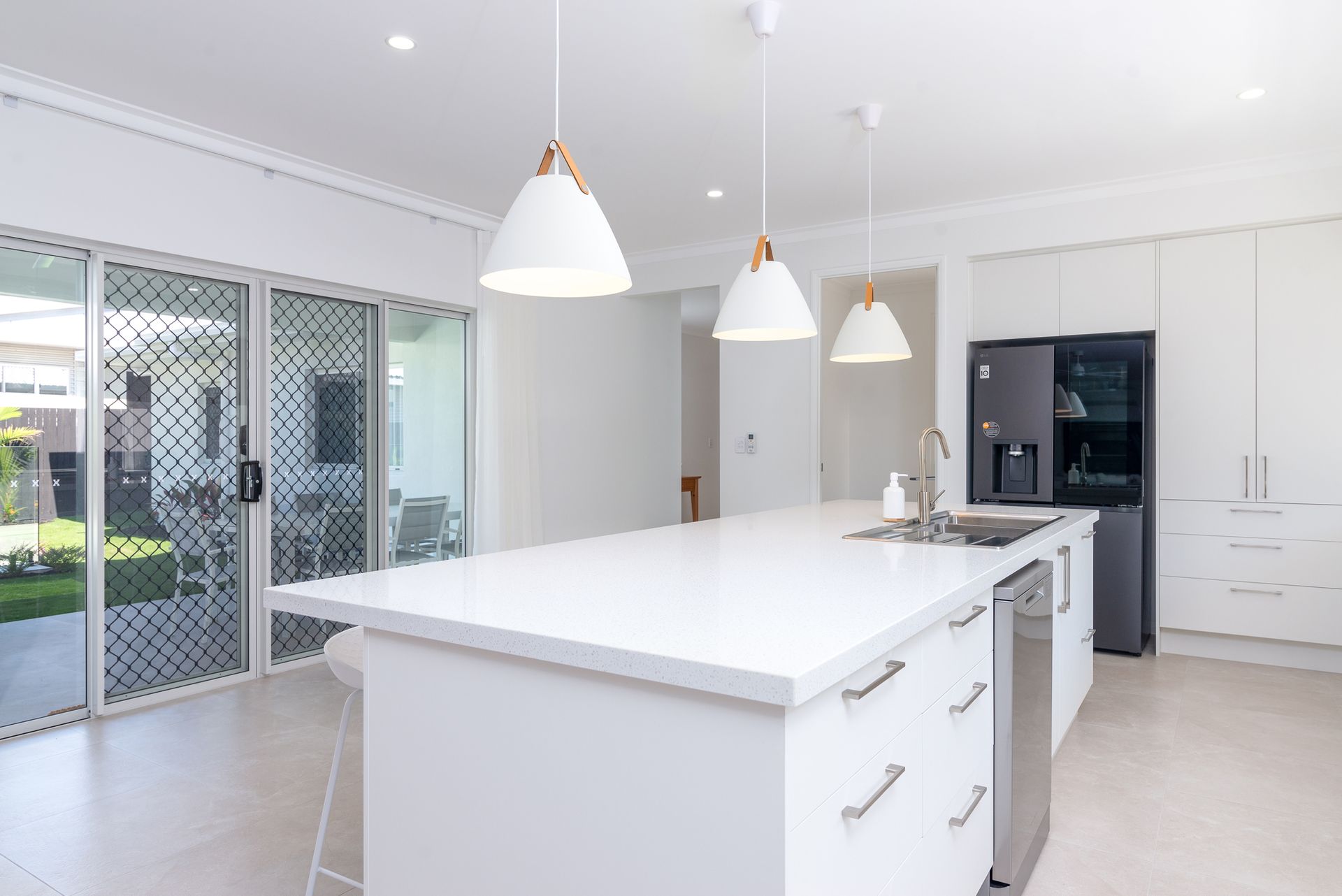 While you can avail yourself of the many and varied dining options that nearby Port Douglas or Mossman have to offer, you can also very happily choose to stay in thanks to the home’s fully optioned kitchen that comes complete with an oven, microwave, cooktop, dishwasher, large fridge, dual sinks, abundant storage and bench space and a range of small appliances.