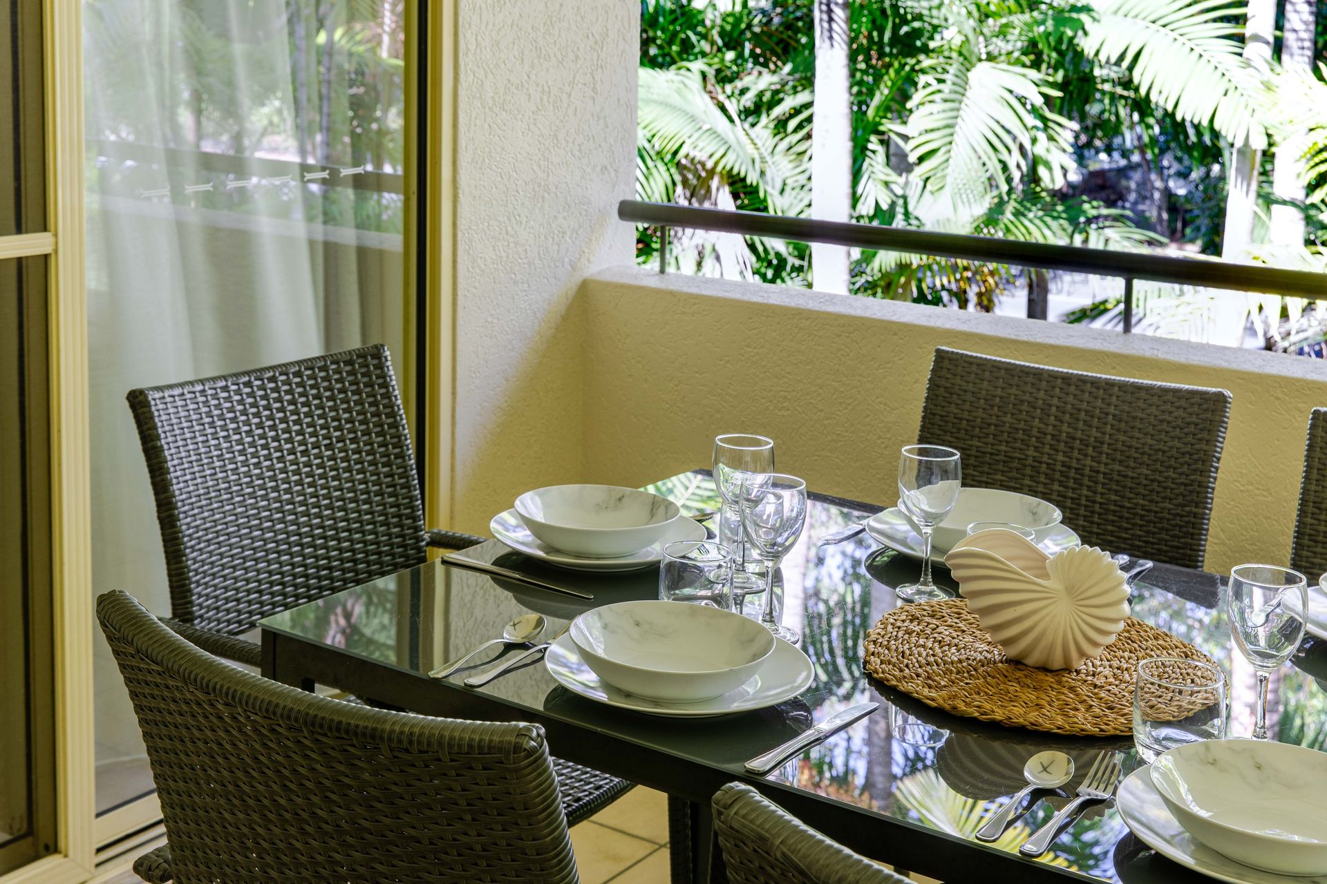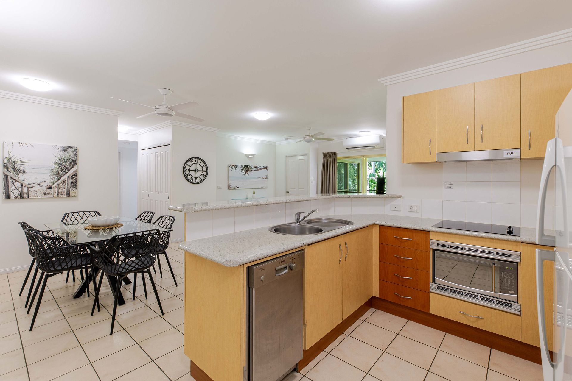 While the wide range of dining options in Port Douglas will have you spoiled for choice, you can also very happily and comfortably choose to stay in thanks to the well appointed kitchen that features a four-burner cooktop, microwave, fridge-freezer, dishwasher, dual sinks, and all your small appliances, crockery, cutlery and glassware.