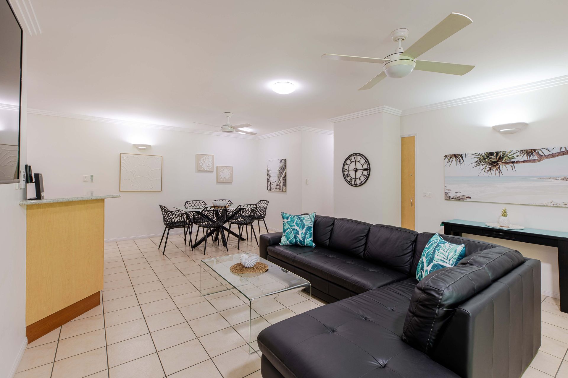 The light, bright, open plan living, dining and entertaining space greets you on arrival with its large comfy couch, 6-seat dining table and the combination of air conditioning and dual ceiling fans that will help assure your comfort at all times.