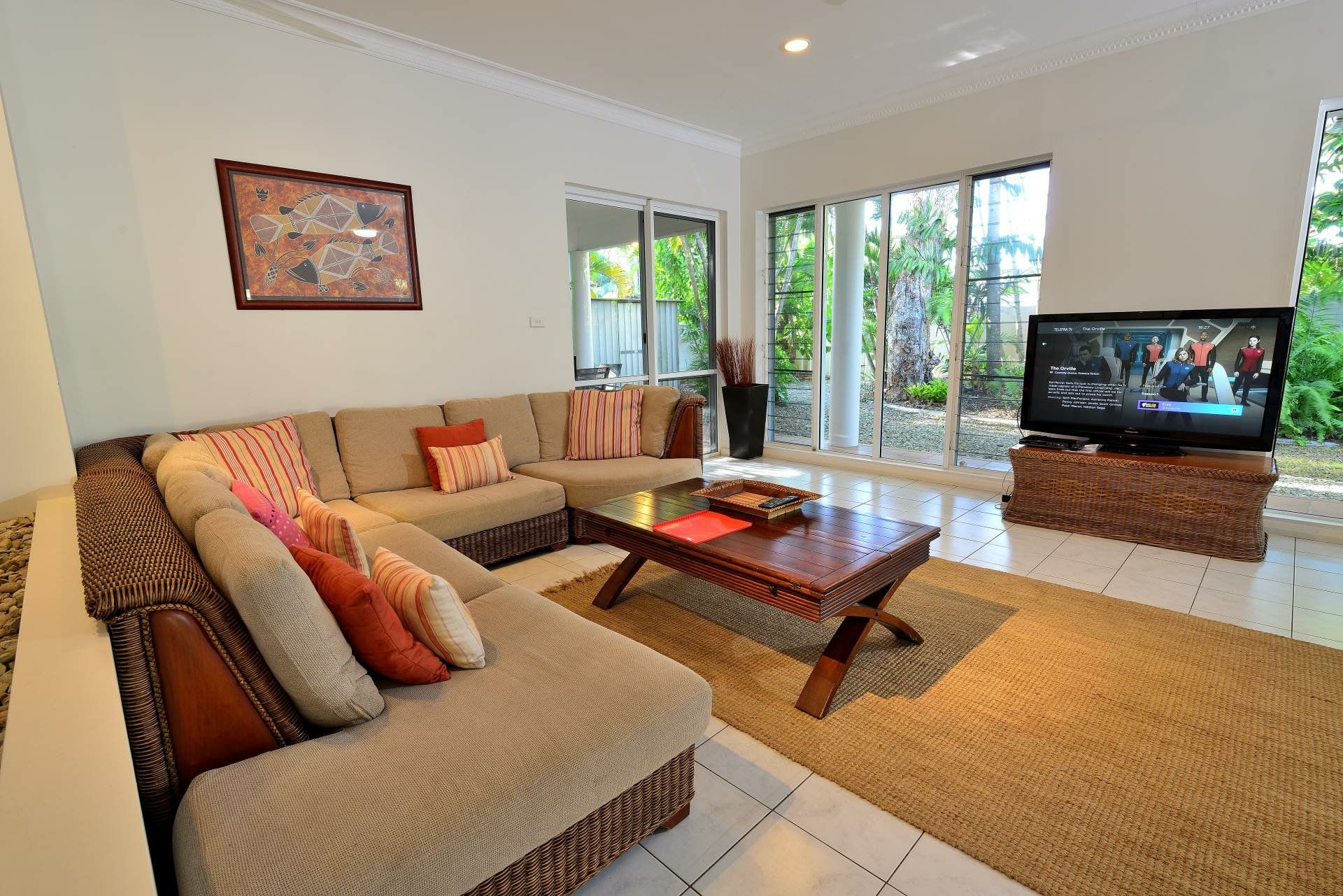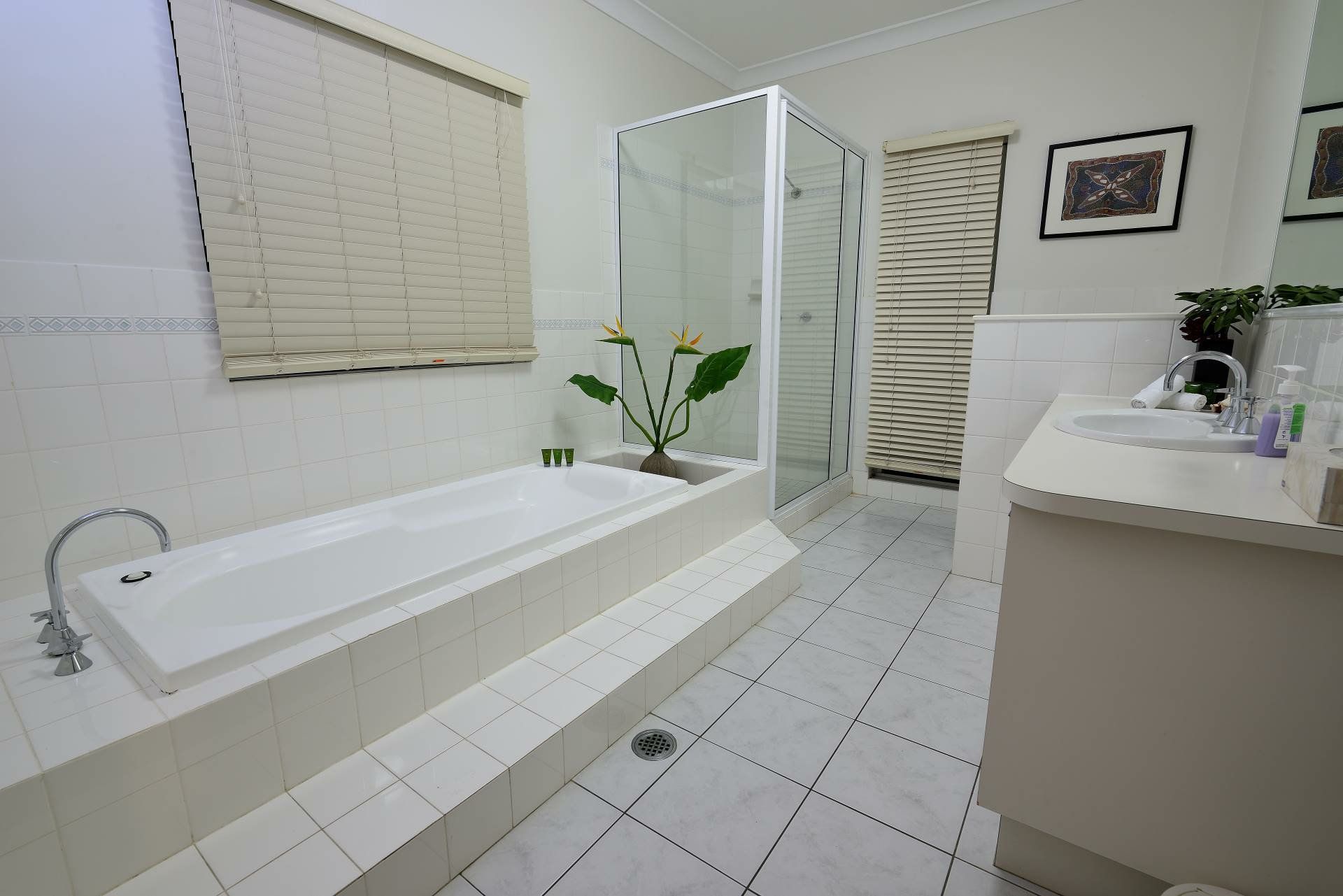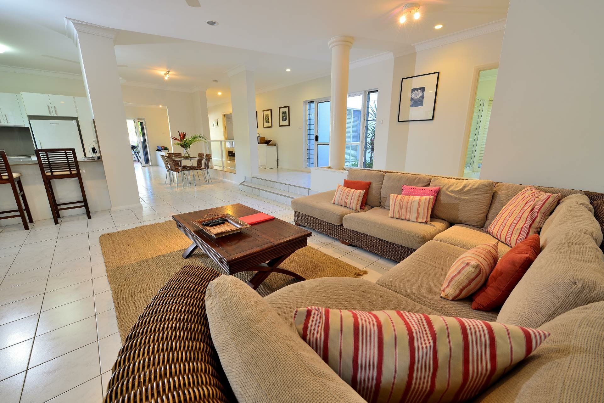 Inside, the combination of air conditioning, ceiling fans, louvre windows, bi-fold doors, tropical inspired window treatments, tiling (carpets to the bedrooms) and cool neutral d&aecute;cor will keep everyone happy.
