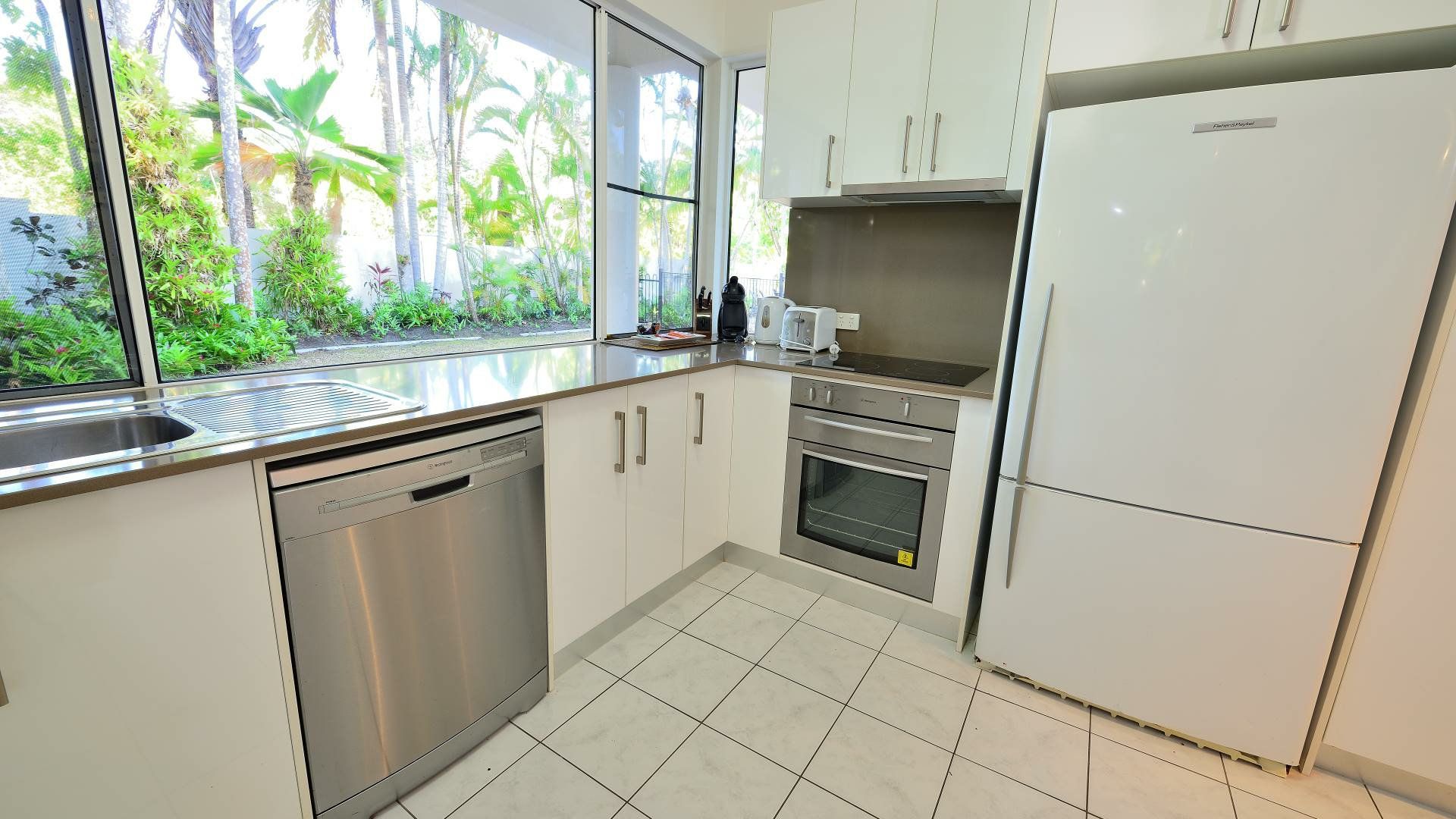 While Port Douglas has all your dining out options covered, dining in is also a breeze thanks to the fully optioned kitchen that has everything you need including an oven, four burner cooktop, microwave, dishwasher, large fridge/freezer, dual sinks and excellent benchtop and storage space.