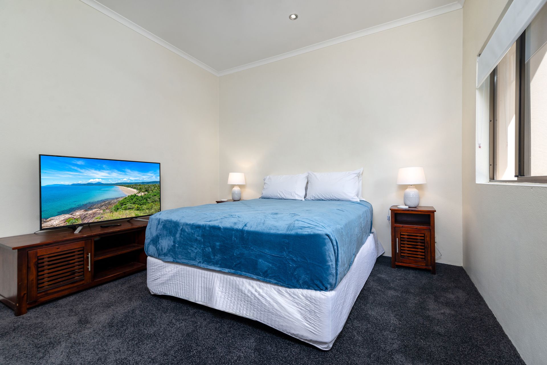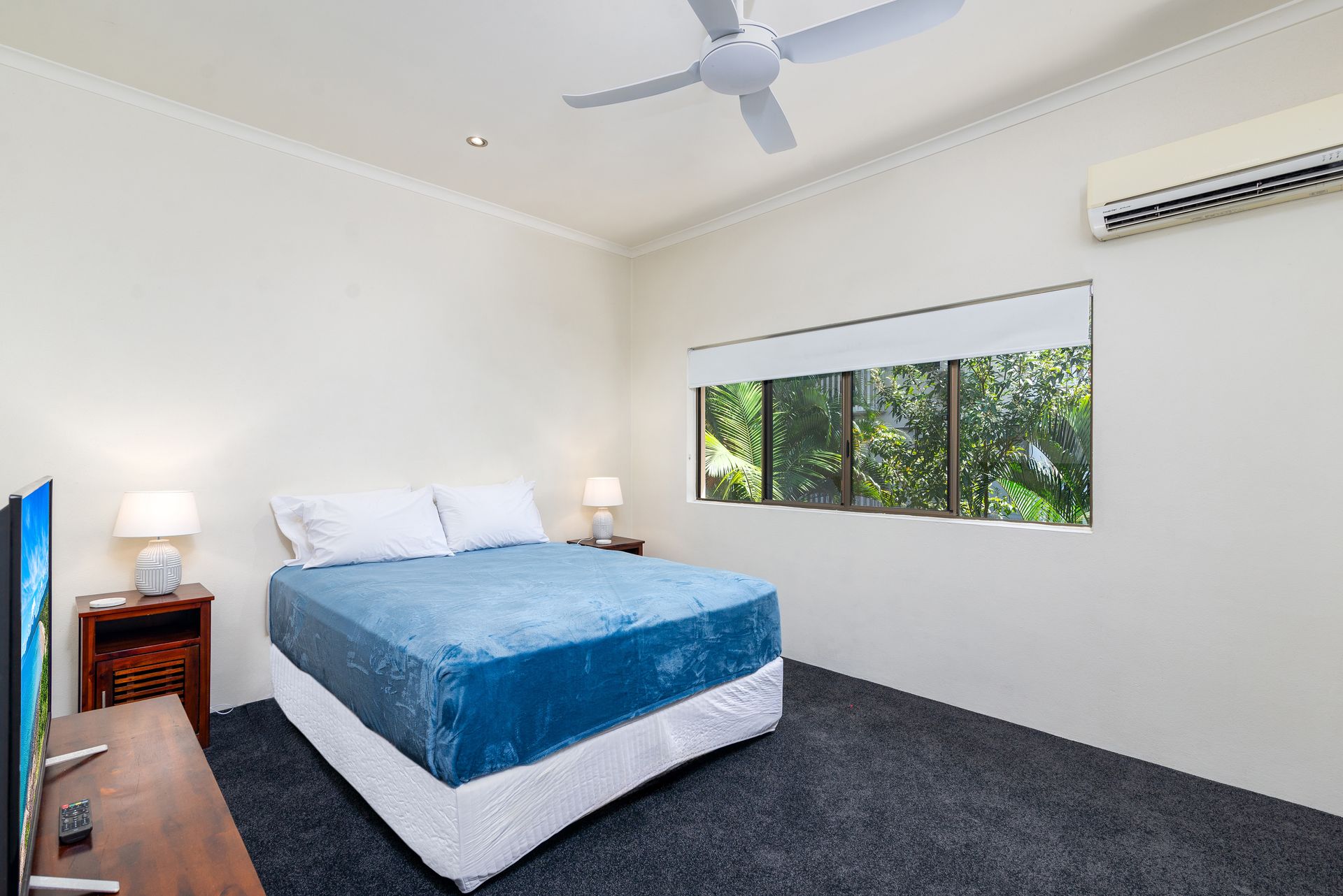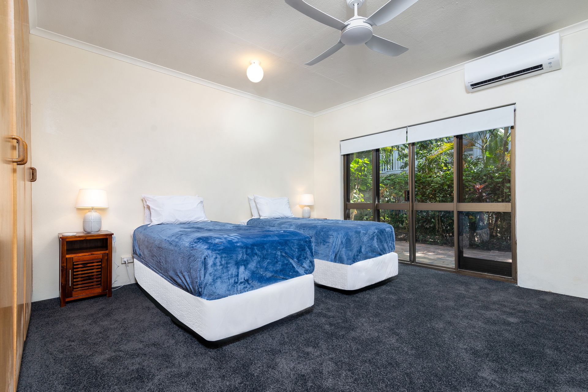 Both bedrooms are large and feature comfortable carpeting, air conditioning, ceiling fans and built in wardrobes. Privacy is also assured with one bedroom downstairs and one up. Bedrooms can be configured either with 1 Queen bed and 2 Singles or 1 King bed and 1 Queen bed.
